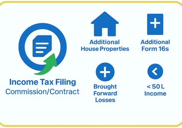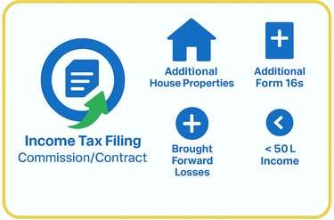 Commission/Contract Income, Multiple House Properties, Additional Form 16s, Brought Forward Losses, and Foreign Assets, income < Rs. 50L