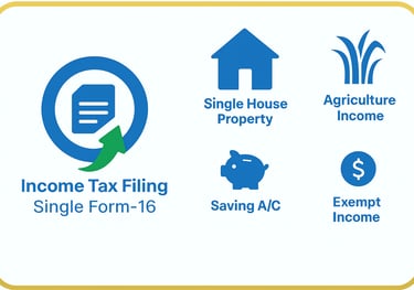 Single Form-16, Single House Property, Agriculture Income, Saving A/C, Exempt Income, Dividends, income < Rs. 50L