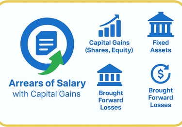 Arrears of Salary, Capital Gains (Shares, Equity, Fixed Assets, Brought Forward Losses). Arrears of Salary with Capital Gains