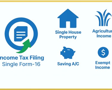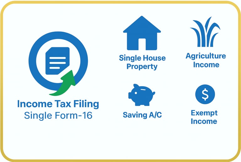Single Form-16, Single House Property, Agriculture Income, Saving A/C, Exempt Income, Dividends,