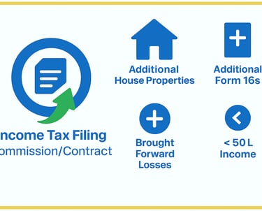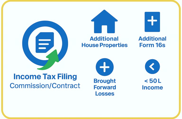 Commission/Contract Income, Multiple House Properties, Additional Form 16s, Brought Forward Losses, and Foreign Assets, income < Rs. 50L