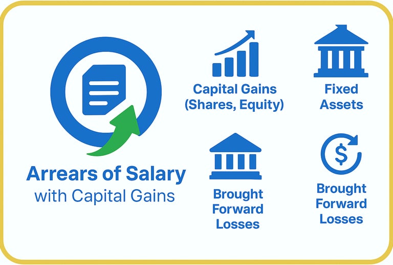 Arrears of Salary, Capital Gains (Shares, Equity, Fixed Assets, Brought Forward Losses). Arrears of Salary with Capital Gains